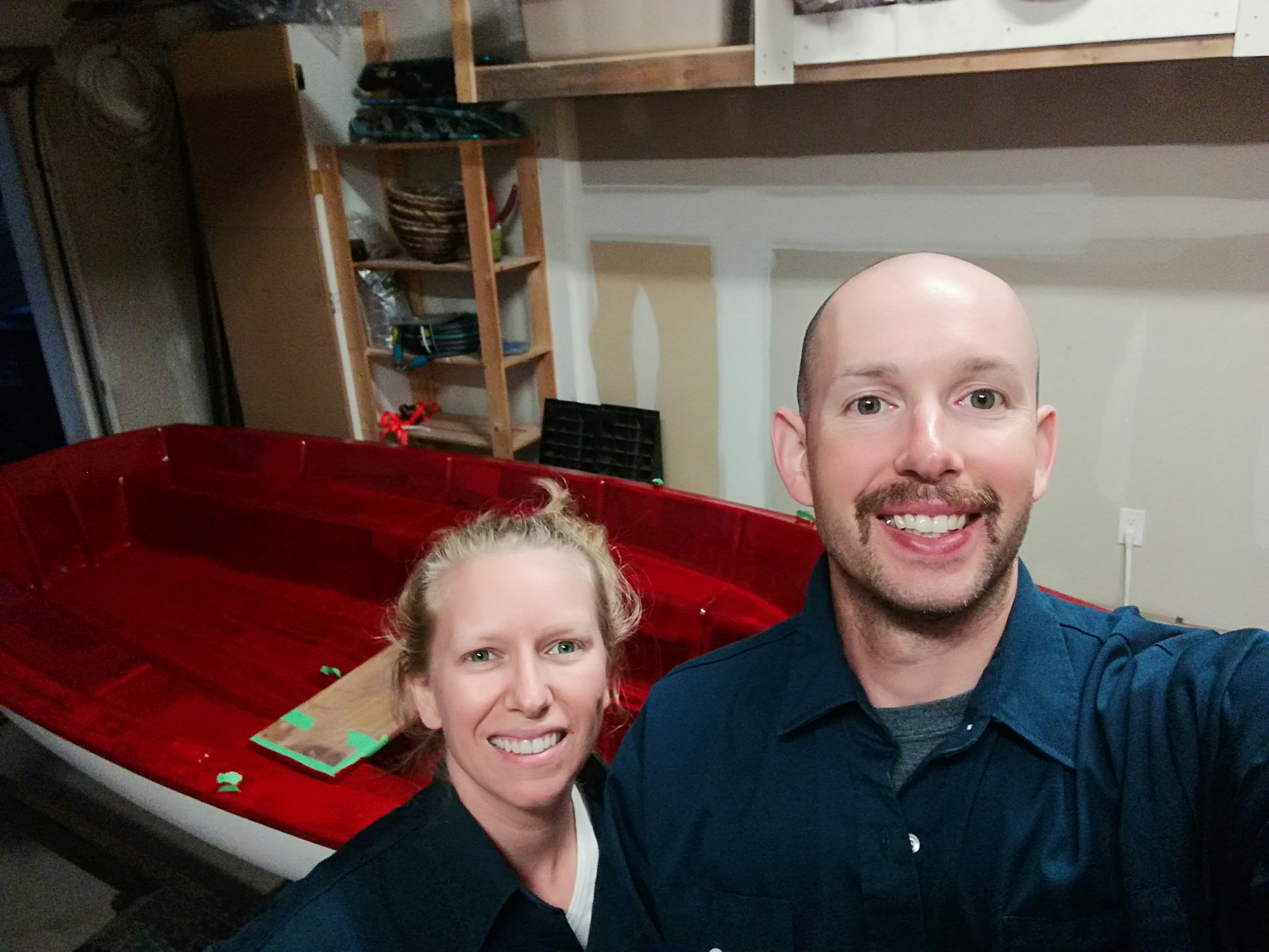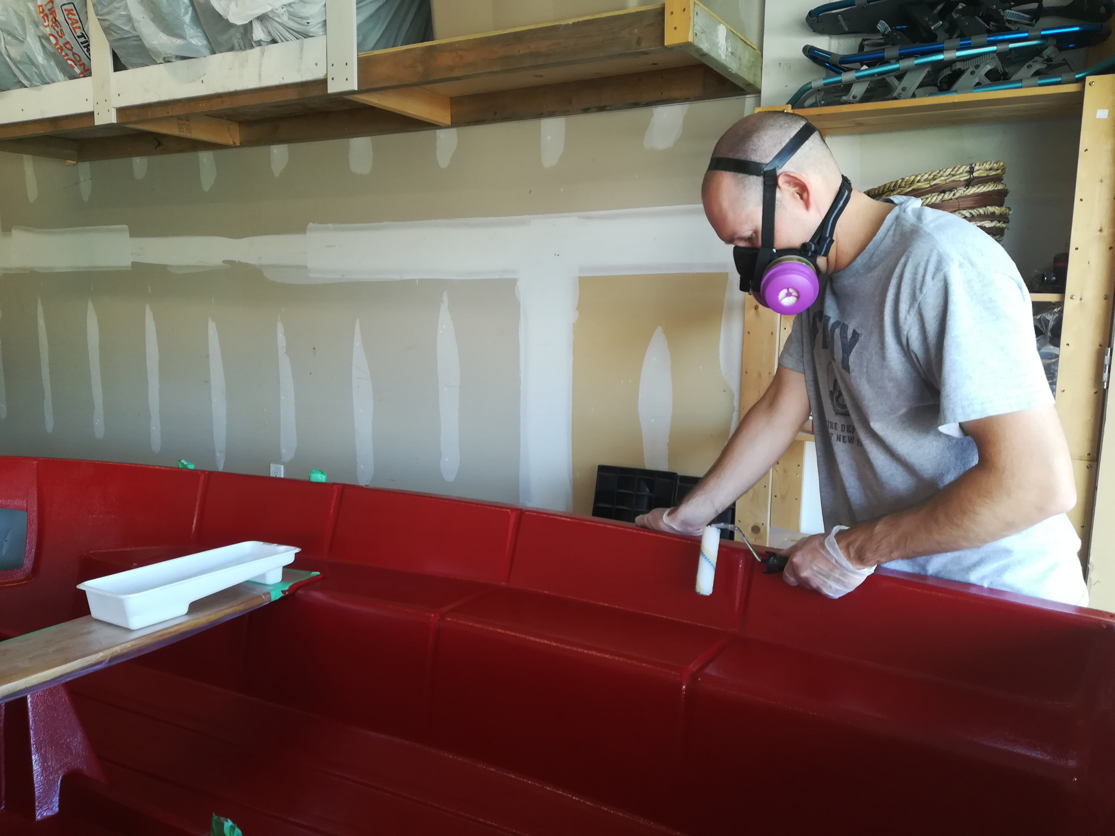 The blue paint on the dinghy was in fairly poor condition and we needed to give it a touch up. We picked fire engine red and covered that with transparent truck bed liner to provide grip. In retrospect we should have only put the truck bed liner on the seats but we'll leave it as-is until the next major refit.